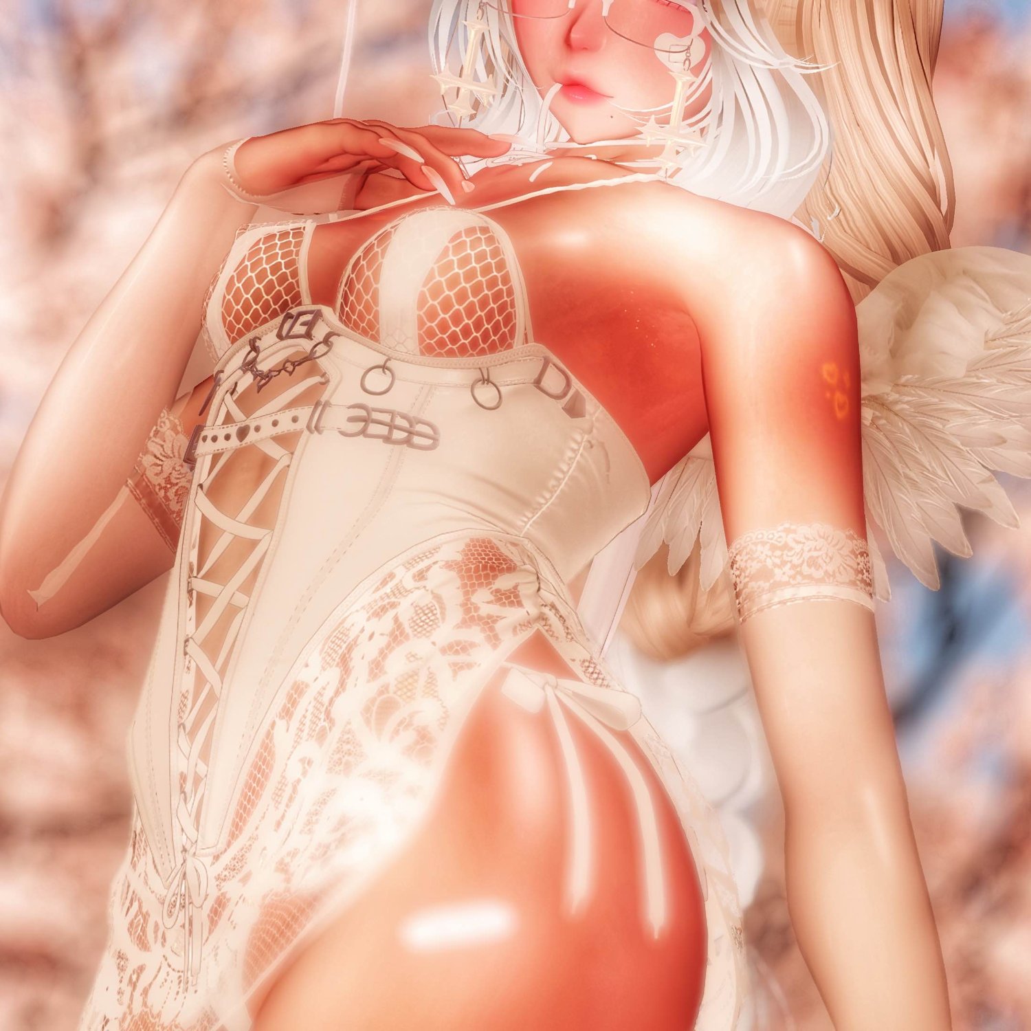 Lace Dress, Corset, Panties, Bra, & Sleeve Puffs / Pasties / Wings / Long Sleeve Dress / Shorts / Sleeveless Top / Boob Strap (no longer for sale) / Choker / Hairs 1, 2, 3, 4 / Thigh Highs